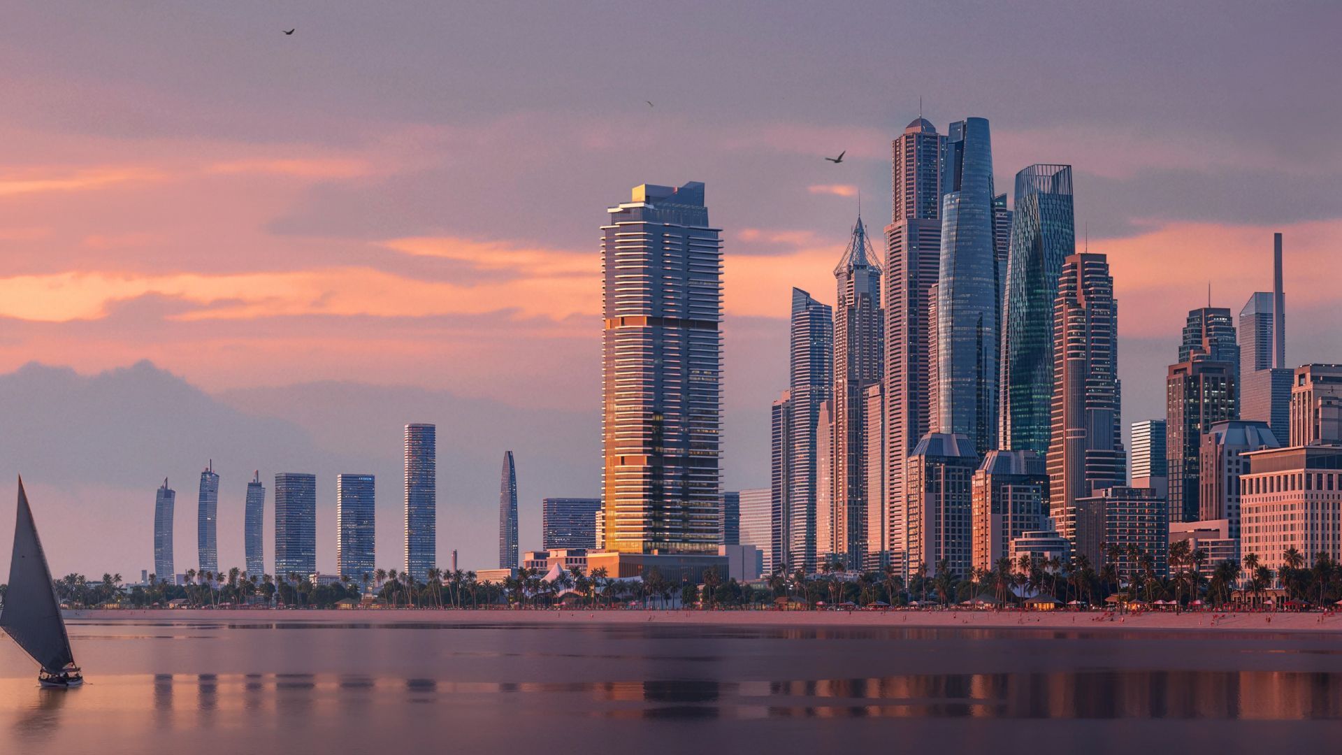 Jumeirah Beach Residence (JBR) — это сверхпопулярный прибрежный район, созданный для жизни у моря. Это не просто ряд жилых башен, а цельный квартал с пешеходной набережной The Walk, собственным широким пляжем, открытым торговым комплексом The Beach и сотнями кафе, ресторанов и бутиков прямо на первом этаже.