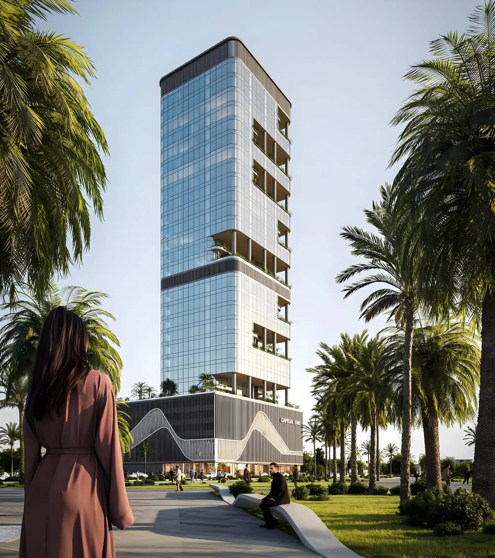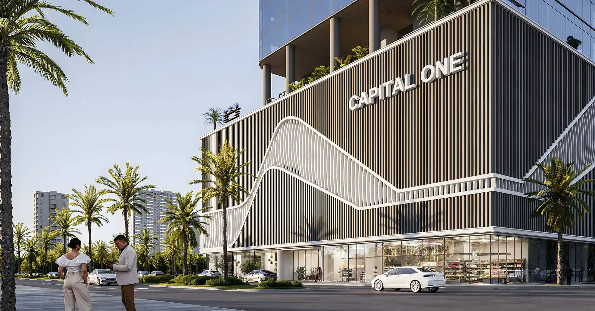 Capital One JVC — новый 23-этажный бизнес-центр от Centurion Properties, расположенный в стратегическом районе Jumeirah Village Circle (JVC). Проект предлагает редкий для локации формат коммерческой недвижимости — офисы и торговые помещения с панорамным остеклением, частными террасами и современной архитектурой.