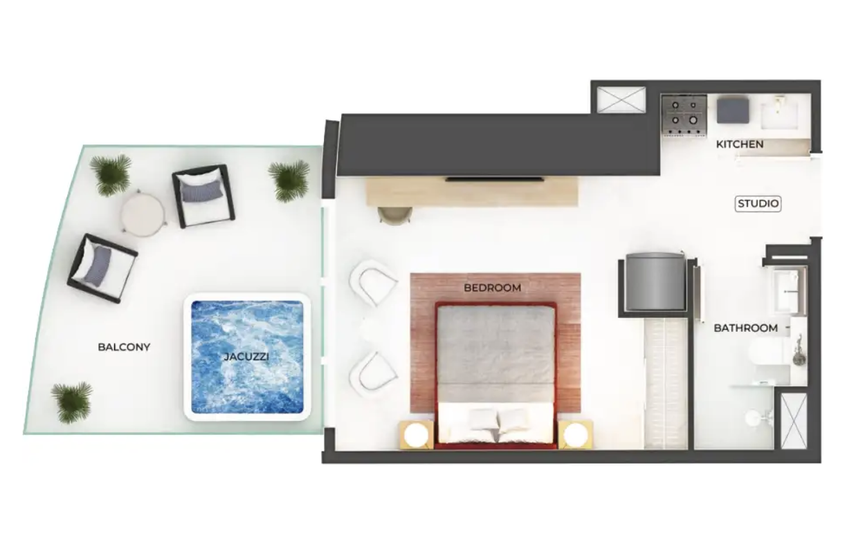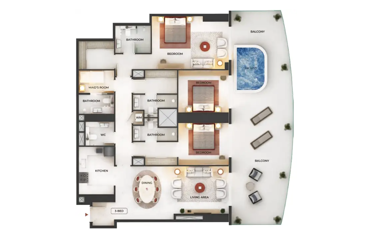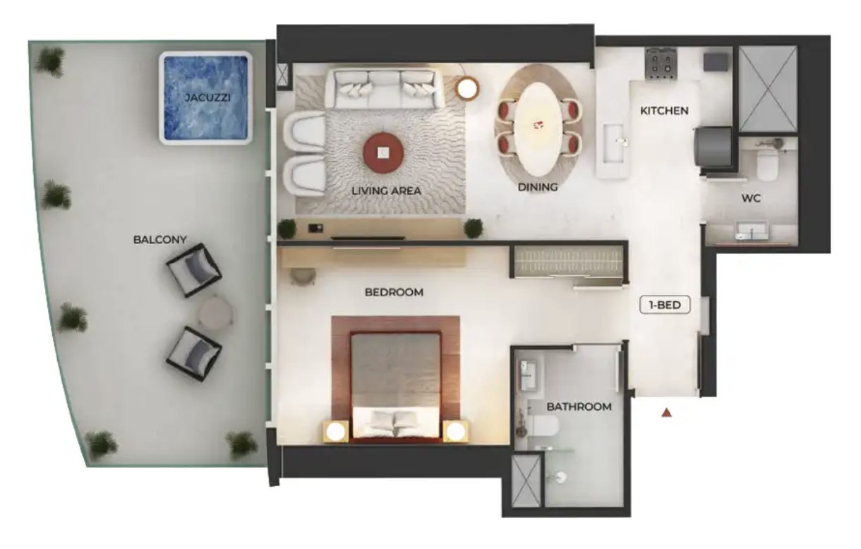 - Редкий формат: апартаменты и студии с частными бассейнами и джакузи — уникальное предложение для центра Дубая.