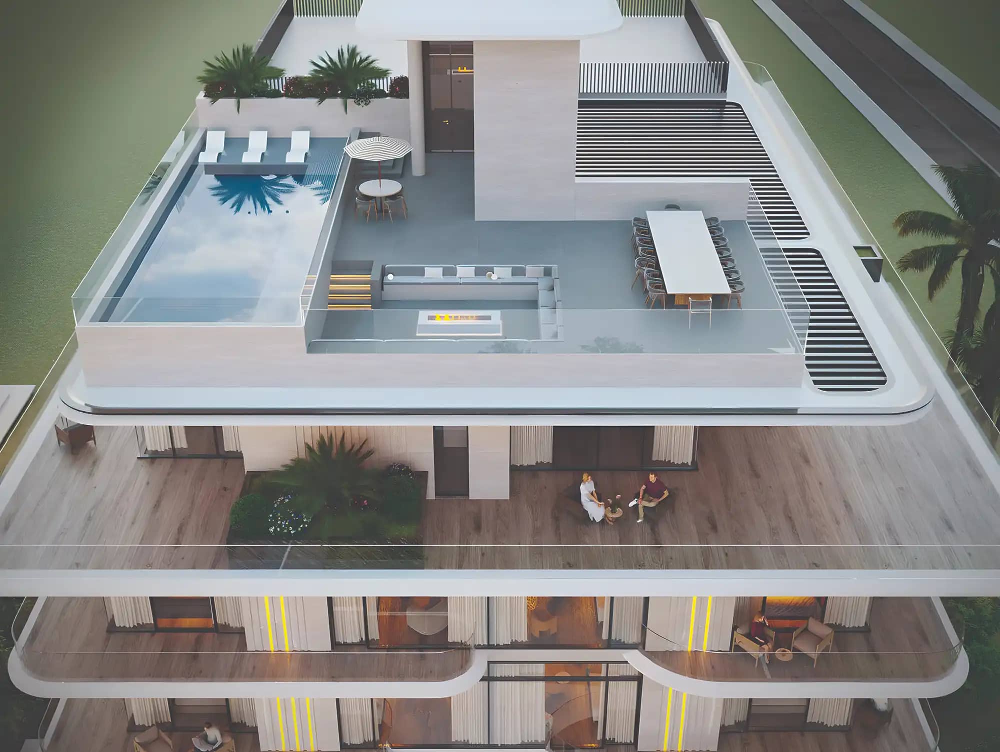 Низкоэтажное здание с архитектурой в стиле “modern minimal” предлагает всего 38 резиденций и создаёт ощущение уединённого клубного дома посреди динамичного города.