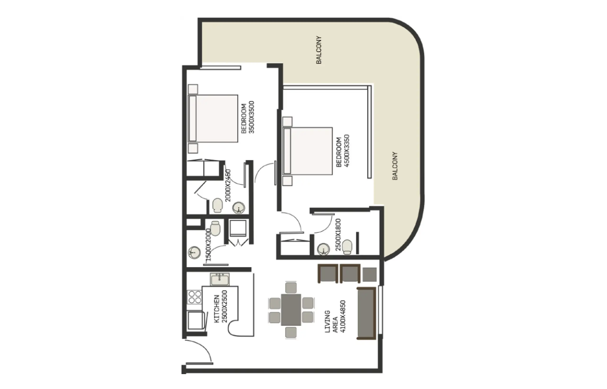 В комплексе представлены апартаменты с 1 и 2 спальнями, а также два эксклюзивных пентхауса.