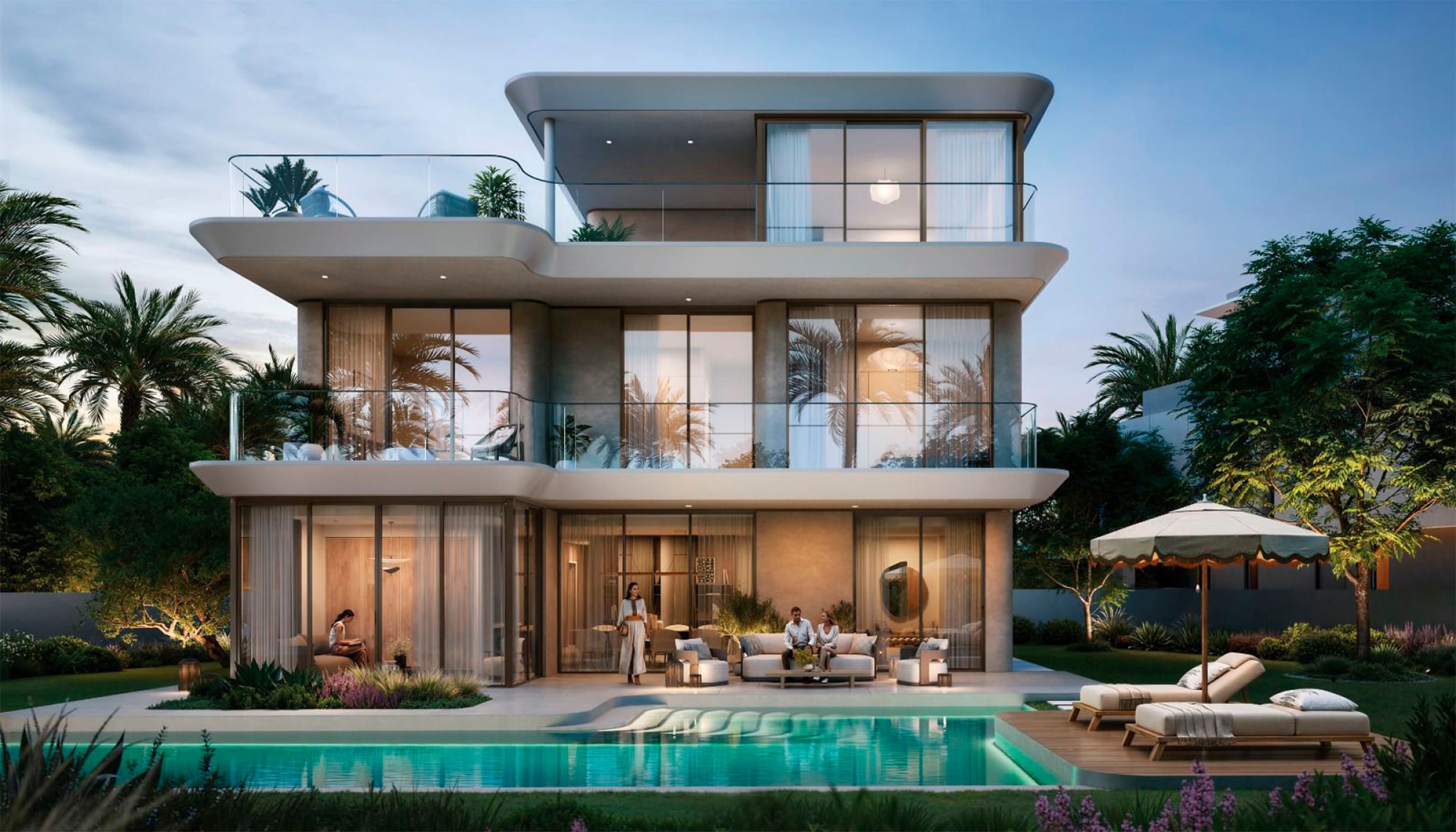 Тип виллы напрямую влияет на ее ценность и атмосферу. Beachfront — это роскошь «первой линии», waterfront (вид на канал или залив) сочетает панорамы с доступностью, а виллы у поля для гольфа (Dubai Hills Estate) предлагают престиж и элитное комьюнити